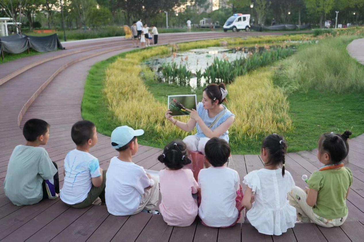 活动的序幕随着星光点亮而拉开。孩子们以荧光饰品装扮自己,化身为夜晚的“小精灵”。在雕塑公园内,他们兴致勃勃地寻找形态各异的雕塑进行打卡,细心聆听来自草丛与树梢的虫鸣交响曲,并在金色沙滩上展开“寻宝”探索。孩子们亲手制作的夜光瓶,宛若跌入凡间的星辰,成为公园夜幕下一道灵动而璀璨的风景。