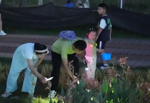 伴随着欢快的旋律,这些手提“星光”的精灵们翩翩起舞、放声歌唱。点点荧光随着孩子们雀跃的身影在夜色中流转,仿佛一条流动的星河,将夏夜点缀得格外明亮与欢快。活动现场,大手牵着小手,共同漫步于温柔的夜色之中,留下了温馨而美好的暑期记忆。