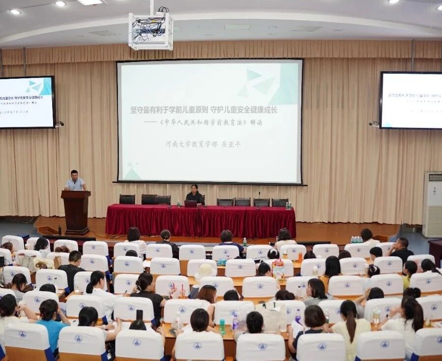 河南省学前教育研究中心主任、河南大学博士生导师岳亚平教授围绕《中华人民共和国学前教育法》,系统阐释了国家对学前教育的职能定位、儿童权利保障及融合教育推进等核心内容。她指出,该法的出台标志着我国学前教育步入法治化新阶段,对规范办园行为、保障教育公平具有重大意义,并引导教师牢固树立“最有利于儿童”的法治意识。