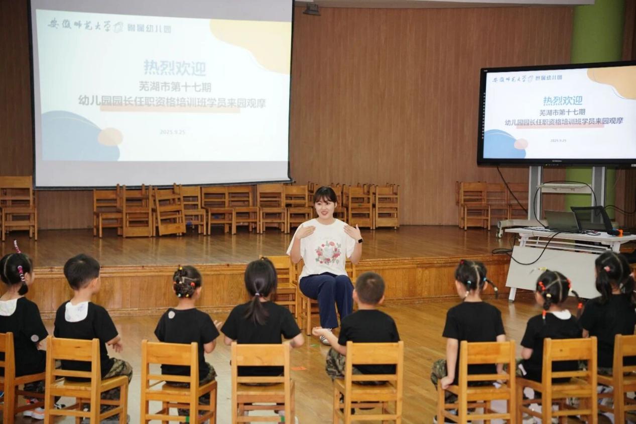 为促进学前教育优质资源共享,提升幼儿园园长的课程领导力与管理水平,2025年9月25日下午,安徽师范大学附属幼儿园热情接待了“芜湖市第十七期幼儿园园长任职资格培训班”全体学员来园,开展了一场内容充实、注重实效的观摩交流活动。本次活动为全市幼教同仁搭建了一个深度对话、互学共进的平台。